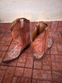 Vendo per inutilizzo dovuto a motivi di allargamento plantare, diverse paia di Stivali Texani Vintage di Marca (Charro, Marlboro, HecSan ecc.) Taglia 45 (calza anche una 44 se si utilizza un calzino spesso). Possibilità di vendita in blocco (es: per collezionisti o arredamento locali) o vendita singolarmente (prezzo 80€ -120€ a paia.) Altre Paia disponibili non inserite in annuncio. Tenuti sempre in armadio e con imballo interno di carta. Tutti dotati in aggiunta di suola e tacco in vibram antiscivolo. Tutti in buono stato e senza evidenti segni di usura. Ritiro a Mano su Pomezia e dintorni. No perditempo.