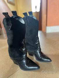 texani neri tacco coperto punta con motivo pitonato/ coccodrillo taglia 37 nuovi
