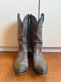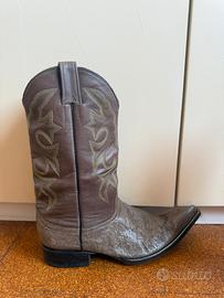 Vendo stivali da cowboy originali in vera pelle, colore marrone con cuciture decorative. Taglio a punta classico, usati il giusto ma in buone condizioni, pronti per essere indossati. Ideali per chi ama lo stile western e country.