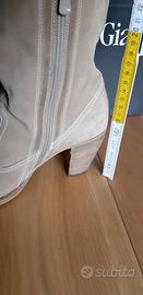 Vendo stivali texani donna Nero Giardini in vera pelle scamosciata n. 39 color beige, fondo vero cuoio con soletta gommata, tacco 7 cm ma si portano molto bene, altezza polpaccio con cerniera per una migliore calzata, usati ma ancora in buonissimo stato di conservazione e fattura artigianale di ottima qualità