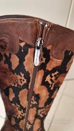 LORIBLU - Stivali texani in vera pelle (dentro e fuori), vero cavallino maculato, suola di vero cuoio - tg. 39