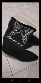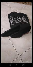 Stupendi stivali texani in tessuto Stretch con disegni su entrambi i lati, lunghezza fino a sotto il ginocchio.