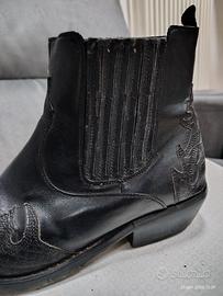 Stivali Texani Uomo Vintage originale fine anni '90 . Numero 42. Non c'è scritto "vera pelle" ma essendoci scritto "lavorazione artigianale" presumo che sia pelle. stile texano/camperos, perfetti per un look vintage, punta affusolata, tacco basso.