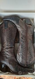 Stivali Texani Vintage in Pelle di capra morbidissima con Effetto Pitone Super Particolari 🔥 DESCRIZIONE Se vuoi qualcosa che non ha nessuno, eccoli. Stivali texani vintage in vera pelle di capra con inserti effetto pitone super particolari. Modello alto con zip laterale, punta affilata e lavorazioni decorative stile western. Non sono i soliti stivali banali: hanno un look rock / country / glam, perfetti con jeans, gonna o outfit più aggressivi. ✔ Pelle morbida e resistente ✔ Inserti pitonati lucidi ✔ Tacco comodo 70 mm ✔ Stile vintage originale Condizioni: ottime, normali segni del tempo che danno ancora più carattere 🔥 “Se ti piacciono gli stivali particolari, questi spaccano. Dal vivo ancora meglio.” ⚡