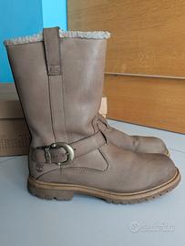 Stivali in pelle tinta tortora, comodi e caldi, usati e con lievi segni di usura oltre ad una macchietta. Spedito con scatola originale.