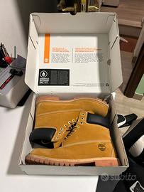 Stivali Timberland Premium 6-Inch in colore Wheat, in ottime condizioni con scatola originale. ⭐️ Condizione: 9/10 🎲 Taglia: 11 W 🎨 Colore: senape 📦 Spedizione veloce e accurata.