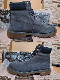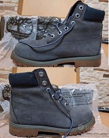 Modello: Timberland Premium 6-Inch (stivale classico alto 6 pollici). Colore: Forged Iron (un grigio scuro/antracite). Taglia EU37 Stato: ottimo, utilizzate 4/5 volte, come nuove in confezione originale. Materiale: Pelle pregiata (nubuck) con costruzione impermeabile e cuciture sigillate. Spesso catalogato come modello per ragazzi (Junior/Big Kids) o donne.