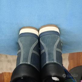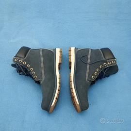 stivali classici Timberland modello Premium 6-INCH, modello famoso per la sua robustezza e impermeabilità . colore blu la tomaia è in nabuck con cuciture sigillate per mantenere i piedi asciutti ,presenti colletti imbottiti per calzata confortevole e occhielli metallici antiruggine . La suola è di gomma carrarmato che offre adesione e stabilità. mai usati