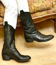 Stivali tipo texani in pelle di vitello marrone 37,5 (vestono fino 38,5)