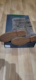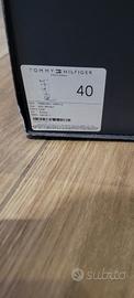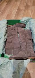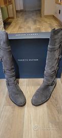 Stivali in pelle scamosciata Tommy Hilfiger, taglia 40, lunghezza soletta 24 cm, altezza 40 cm, altezza suola 1 cm, altezza tacco 2 cm, larghezza nella parte superiore 18 cm, larghezza al rialzo 14 cm.