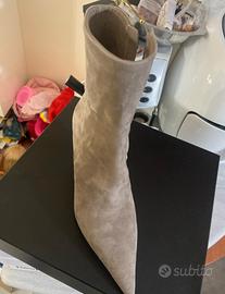 Stivali nuovi mai indossati per errato numero camosciati grigi di vera pelle interna di assoluta vestibilita’