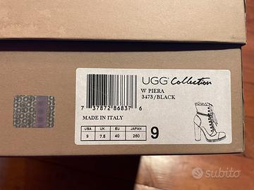 Vendo causa inutilizzo, indossati solo una volta, stivali a tronchetto marca UGG numero 40, colore nero, tacco alto 11 cm, stringati, come da foto, sono sostanzialmente nuovi! indossati solo per uscire a cena una volta. Troppo alti per i miei gusti. Scarpe molto originali, con pelo interno ovunque, come soliti modelli UGG. Costo da Negozio 850 Fr., vendo o meglio svendo a 100 €. Piuttosto che tenerli nell’armadio e non utilizzarli.