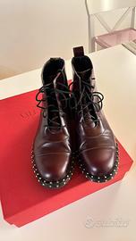 Stivali da uomo Valentino in pelle bordeaux. Impreziositi da borchie rock stud. Misura 42. In ottime condizioni. Scatola e busta originali