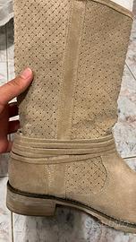 Stivali traforati da donna n. 38 (altezza metà polpaccio) in pelle scamosciata colore beige, in perfette condizioni, con scatola. Usati un paio di ore.