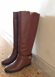 Stivali Via Roma 15 pelle cuoio,con rialzo interno di 5 cm e fibbia oro laterale.Comodi, resistenti, praticamente nuovi. Taglia 37. Un vero affare!