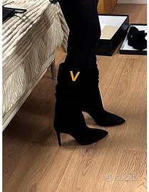 Stivale con tacco Via Roma 15 in camoscio arricciato nero 37 usati una sola volta