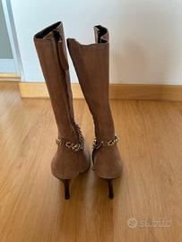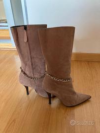 Stivali vintage anni 2000 – suede rosa cipria con catena – Y2K style