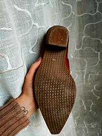 Bellissimi stivali da donna a punta. Colore marrone terracotta numero 38. Vera pelle, tacco in legno. Di alta qualità e in ottimo stato.