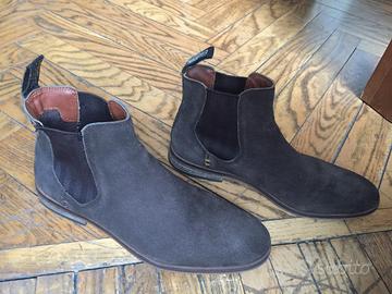 Sono degli stivali in pelle scamosciata di colore marrone scuro e sono in perfette condizioni, usati solo qualche volta.