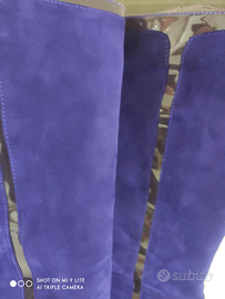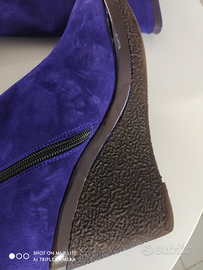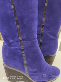 Stivali Viola taglia 38,tacco zeppa 10, lunghi 35