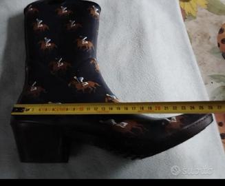 Stivali western da donna tg 41, in gomma, nuovissimi, con custodia in stoffa. Le misure in cm sono visibili in foto. Disponibili la versione zebrata in 41 e una versione rossa tg 36 visibile in un altro mio annuncio.