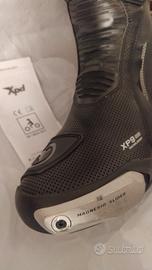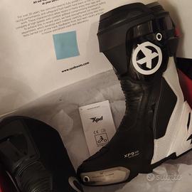 Stivali molto sportivi e tecnici Xpd Xp9 - S Air , in condizioni introvabili Molto Traforati , slider in magnesio intercambiabili Tipologia pista , con scarpetta interna e chiusura a cerniera e cricco alto . Stivali tipo Supertech e Dainese Torque Calzano grandi, un 43 (sono 42 ma ... io porto 42 Alpinestars giusto , e questi sono più grandi) Descrizione tecnica: ✅ Struttura in poliuretano ammortizzante su caviglia, tibia e tallone ✅ Pinna posteriore aerodinamica e paraleva del cambio in poliuretano ammortizzante ✅ Inserti rimovibili sul tallone in resina acetalica e cursore laterale sullo stinco ✅ Ghetta in neoprene: crea una tenuta impermeabile sulla parte superiore dello scarpone, impedisce l'ingresso di polvere e oggetti nello stivale ✅ Cerniera laterale ✅ Ventilazione nella zona del tallone e dello stinco ✅ Cursore tibiale in magnesio ✅ Plantare Air Tech per migliorare l'assorbimento del sudore ✅ Soletta in nylon non comprimibile e resistente alle forature ✅ Suola rotonda, antiscivolo e orientata alla gara in gomma vulcanizzata ✅ Il design diagonale del tallone mantiene il posizionamento ideale del piede sui poggiapiedi ✅ Scarpetta interna rimovibile AGS3 (sistema di protezione della caviglia) come protettore biomeccanico ✅ Chiusura con leva di regolazione micrometrica e fibbia a sgancio rapido ✅ Tomala esterna in microfibra ad alta resistenza all'abrasione, spessore 1,55 mm ✅ Interno in microfibra scamosciata, spessore 1,55 mm BeepBeep ind.