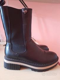 Stivali Chelsea neriBraccialinicon suola platform, inserto elastico laterale e un piccolo charm a forma di cuore sul lato esterno.