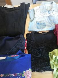 Vendo lotto 10 pezzi abbigliamento donna usato in buone condizioni maglie estive e invernali, 2 abiti estivi e 1 abito nero invernale nuovo con cartellino