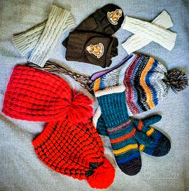 PREZZO TRATTABILE lo stock comprende 3 cappelli, 2 paia di moffole, 2 paia di guanti senza dita, 3 sciarponi di lana, 3 sciarpe invernali, 2 sciarpe primaverili