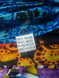 Vendesi stock di 40 foulard indonesiani proposti in un’ampia varietà di colori e motivi. Prodotti in rayon/viscosa tessuto noto per la sua morbidezza e freschezza.