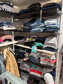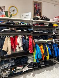 Numero 1600 capi di abbigliamento bambino/a dei seguenti brand (fred mello, mayoral, shoe, lacoste, aeronautica militare, rubacuori, silvian heach, salewa,cmp,emc,sarabanda,lacoste) taglie dalla 3 mesi alla 16 anni, la maggior parte del blocco è invernale ed è composto da piumini, tshirt, polo, maglieria,felpe, leggings, jeans,pile,pantaloni)