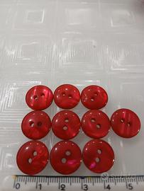 Vendo splendido lotto di bottoni rossi con finitura lucida e venature effetto madreperla. Ideali per progetti di cucito, maglieria, hobbistica o per personalizzare cappotti e cardigan.