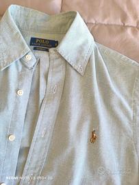 Ralph Lauren colore verde tenue con logo colorato, tg S custom fit, quindi veste bene anche una M o una L slim.