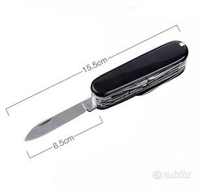 Questo versatile coltellino multiuso è l'accessorio perfetto per gli appassionati di attività all'aperto. Con il suo design compatto in nero o rosso elegante, offre oltre 17 utensili diversi in un unico strumento tascabile. La struttura robusta in acciaio inossidabile include lame multiple, seghetti, pinze, cacciaviti e altri strumenti essenziali. Ogni componente si apre e si chiude agevolmente grazie al meccanismo a molla di precisione. Il corpo ergonomico da 9 cm quando chiuso garantisce una presa sicura durante l'uso. Gli anelli alle estremità permettono di agganciarlo facilmente a zaini o cinture. Ideale per campeggio, escursionismo, pesca e tutte le attività outdoor, questo coltellino multifunzione unisce praticità e funzionalità in un formato ultra-portatile.