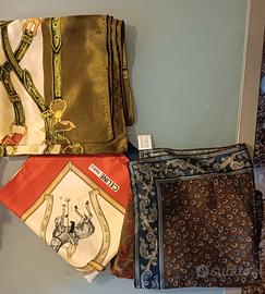 vendo in stock: 13 sciarpe e pochette,con colori e fantasie diverse,talune in seta e tutte in ottimo stato.