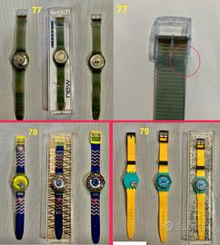 Stock di 14 orologi Swatch con pila da sostituire. Il n.78 e il n.79 sono leggermente danneggiati. Non vendibili singolarmente. - Orologio Swatch n.73_SWATCH CHRONO NEO WAVE SCJ100 - Orologio Swatch n.74_Swatch Chrono Nuovo Sand Storm SCB104 Variante 1990 - Orologio Swatch n.75_SWATCH SCUBA DIVING 200 HYPPOCAMPUS SDK103 AG 1990 VINTAGE - Orologio Swatch n.76_SWATCH SCUBA 200 LOOMI SEETANG SDK900 OLIMPIADI 1996 - Orologio Swatch n.77_Swatch Automatic - Orologio Swatch n.78_Swatch Scuba 200 SDJ100 (ghiera non gira a scatto) - Orologio Swatch n.79 (chiusura danneggiata) - Orologio Swatch n.80_Swatch POP PWB164 Uphill 1992 - Orologio Swatch n.81_Swatch Vintage 1995 Specchio SCM112 Cronografo - Orologio Swatch n.82_SWATCH JELLY SKIN SFK 100 - Orologio Swatch n.83_Swatch Irony Scuba 200 Chrono Aluminium - Orologio Swatch n.84_Irony Chrono Secret Agent - Orologio Swatch n.85_ Swatch Skin Chrono Watch RARE Flatzone SUYK100G - Orologio Swatch n.86_2_Swatch Scuba 200 SDK102 Medusa 1992 NOS Vintage