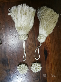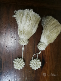 Ultimo Stock di N. 17 grandi nappe color beige chiaro, alte cm. 11 +N. 42 roselle da abbinare, diametro cm. 4. Utili in tappezzeria o per adornare chiavi o altro. Nuove. Consegna a mano zona Pistoia o spedisco. Spedizione gratuita.