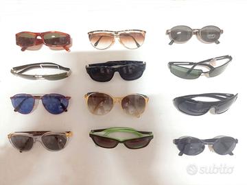 Stock occhiali da sole di marca, vari modelli, tutti originali. Lotto di 24 pezzi, occhiali vintage, mai utilizzati, rimanenze magazzino di ottica
