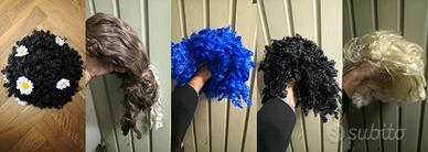 1) 5 Parrucche, di cui una nera con i fiori, una nera classica, una blu elettrica, una bionda e una marrone;