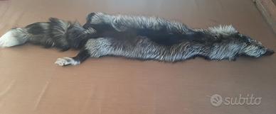 Stola di collo in vera pelliccia di volpe argentata intera, lunghezza 136 cm, larghezza 23 cm, colore con sfumature argentate naturale. Ben rifinito, con fodera interna.