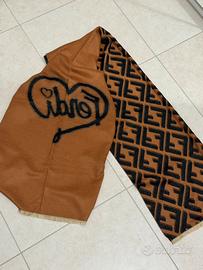 Stola double face stile Fendi FF con motivo geometrico iconico.