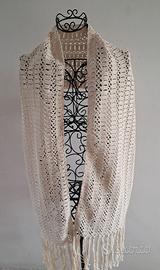 Stola ecru' fatta uncinetto in puro cotone Mis 35 x 170