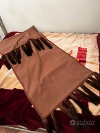 Vendesi raffinata stola/scialle in tessuto di alta qualità (lana morbida), impreziosita lungo tutto il profilo da vere code di visone in tonalità marrone scuro. Un accessorio di classe, ideale per cerimonie, serate eleganti o per dare un tocco di lusso al look quotidiano.