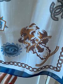 Foulard chanel usabile anche come cintura o fiocco per manici di una borsa. Nulla vieta di usarlo anche come stoffa per creazioni di sartoria. Vintage, nuovo mai usato ed in perfette condizioni. Misura 50x150 cm, fu acquistato unitamente ad un profumo del marchio da mia zia molti anni fa. Mai utilizato e sempre tenuto sigillato un cassetto. Materiale tipo voile / poliamide, sintentico al tatto.