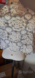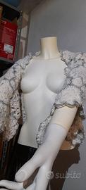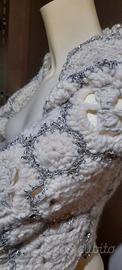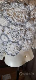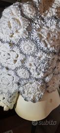 Questa stola realizzata in filato mohair bianco rifinita in filato metallico argento lucidissimo e brillantissimo, rappresenta dei fiori, ed è unito da dei cerchi. E' un capo ricercato ed unico nel suo genere. Sarebbe adattissimo per una sposa invernale.