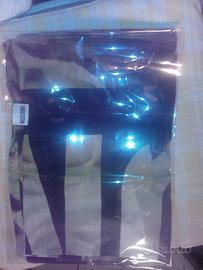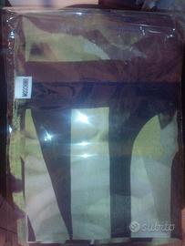 Nuovissima, mai indossata, in seta impalpabile e in confezione originale, si indossa come stola o come foulard, firmata originale MOSCHINO, forma rettangolare con fondo nero e logo a caratteri cubitali color verde chiaro sfumato. Regalo di classe al prezzo ribassato di € 90.