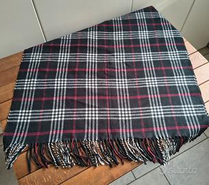 stola, maxi sciarpa a quadri, coprispalle, con frange. modello Burberry. Colore nero, bianco e rosso. Composizione: 35% lana e 65% viscosa. Misure in cm escluse le frange: 66x 170. Nuova mai indossata.