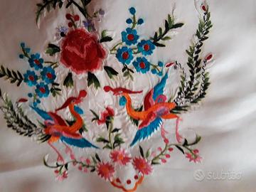 Bellissima, elegante vendo nuova mai usata stola/sciarpa bianca nuova in pura seta, ricamata con fili di seta naturali, 128x38 e 8cm di frangia. Non spedisco