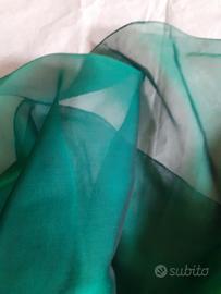 stola in finissima organza di seta color verde scuro m.2,5 x 1,40. piccolo graffio dovuto ad uno spillo" vedi ultima foto".