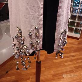 Stola Passigatti 100% seta decorata con roselline in raso e coralli che fanno da stelo. Il colore è un po' più intenso rispetto alle foto.